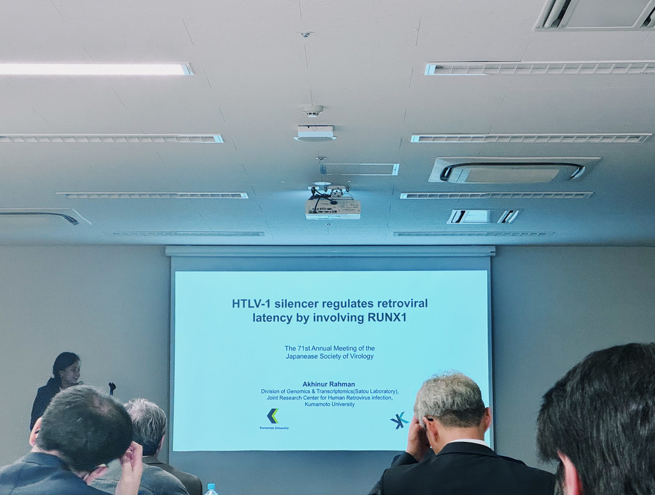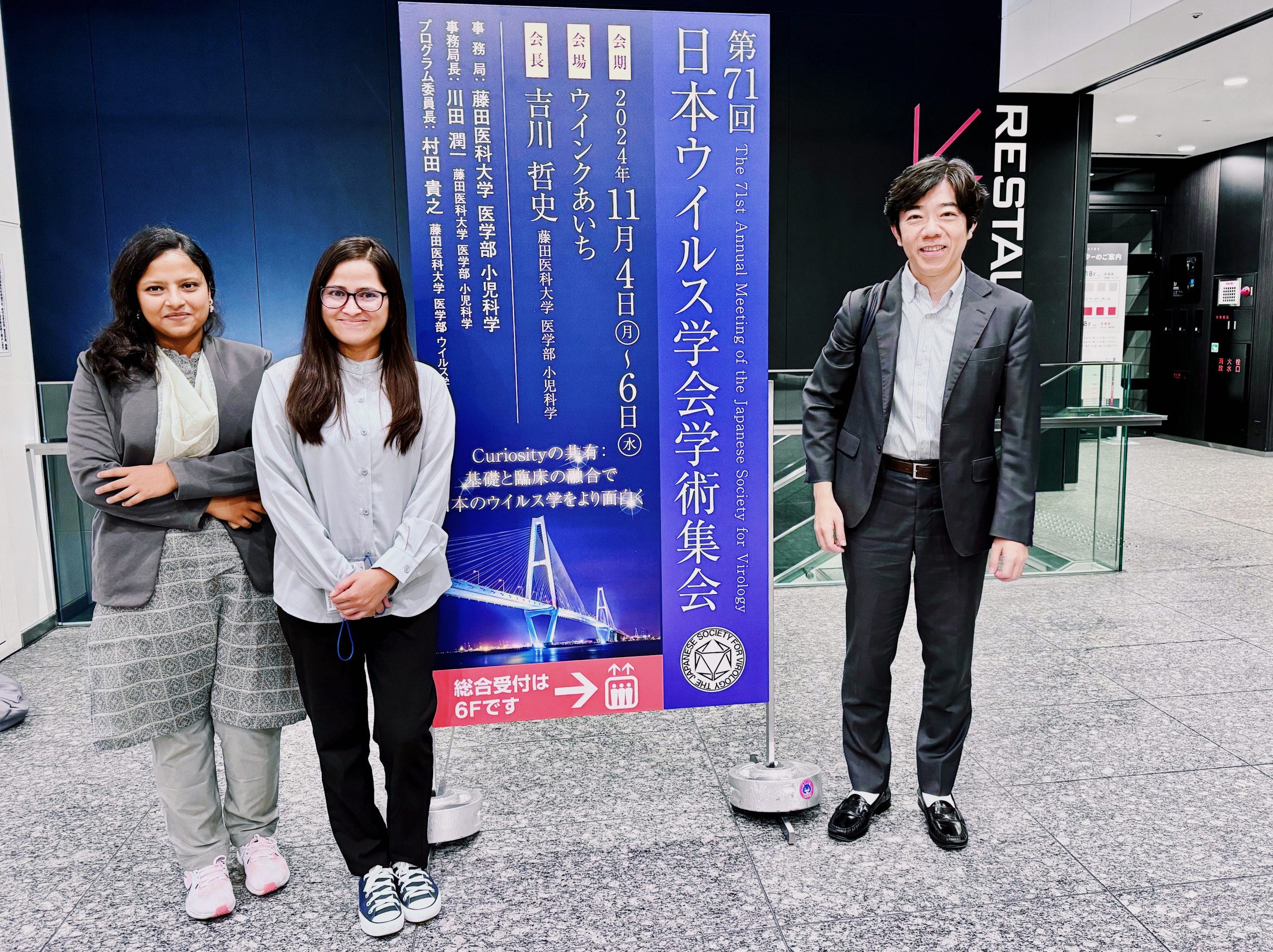 佐藤先生、Akhinurさん、Ishratさんが第71回日本ウイルス学会学術集会にて、研究内容について発表を行いました。(演題はこちら)