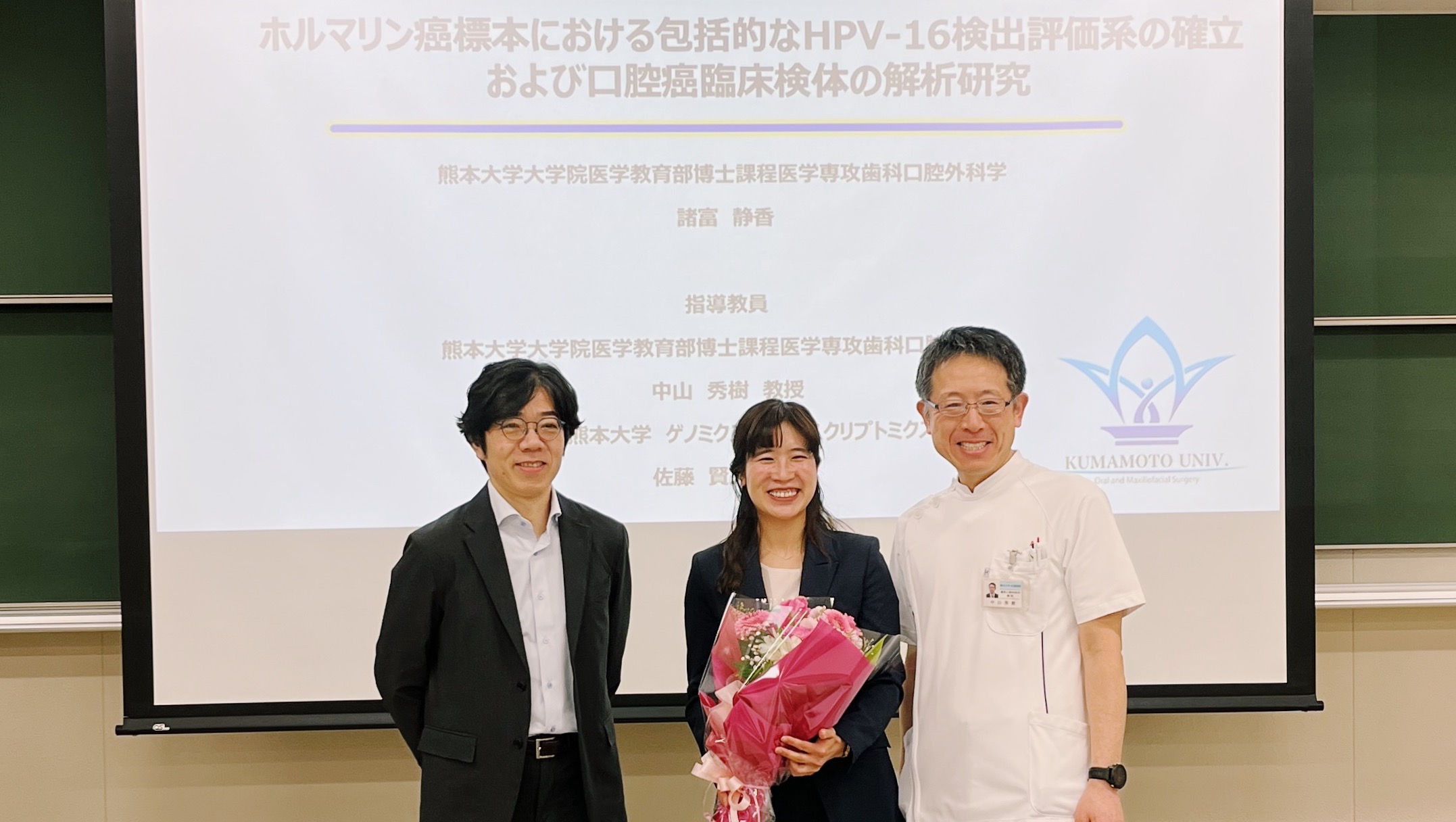諸富 静香さんの学位論文発表会が行われ、諸富さんが熊本大学大学院 医学教育学部 博士課程をご卒業されました。おめでとうございます!
