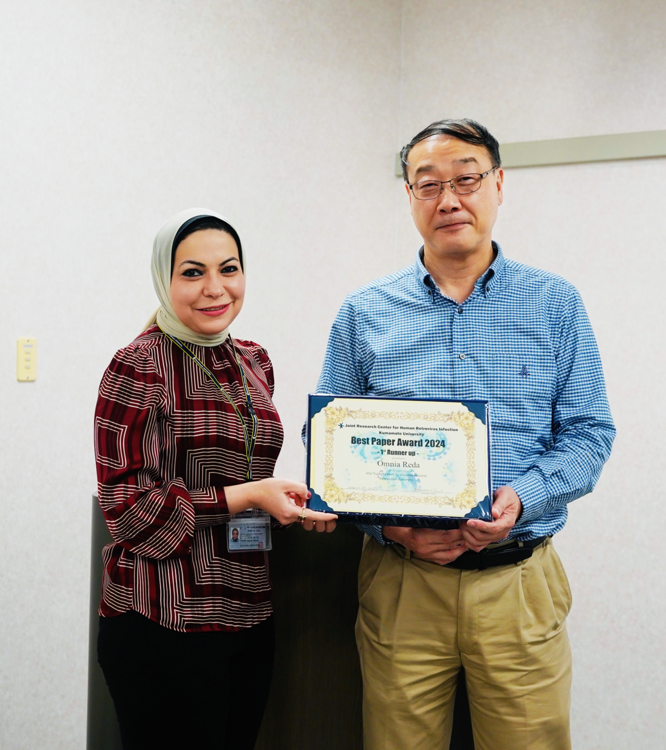 Omnia Redaさんが2024年度 ヒトレトロウイルス学共同研究センター熊本キャンパス ベストペーパー賞準グランプリを受賞しました!