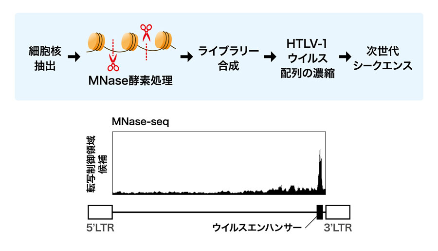 今回の研究成果は、次世代シークエンサーやシングルセル解析などの先端的研究手法で実際の患者検体を高精度に解析することで、従来の手法では見つけることができなかった、HTLV-1プロウイルス内新規エンハンサー領域の存在を明らかにしたものです。本研究成果はHTLV-1感染の持続性や病原性の仕組みの一端を明らかにし、難治性慢性ウイルス感染症であるHTLV-1感染症の問題克服へ向け、一歩前進する重要な知見と考えられます。
