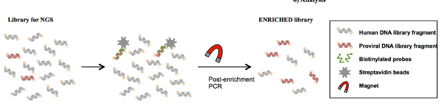 Thus, we conclude that this probe-based, targeted enrichment method improves analysis of provirus sequences within the genomic context. Furthermore, the probes are easily customizable for the provirus sub-types and reduces the cost of performing deep sequencing runs. We believe that this method of probe-based provirus enrichment should be useful for other applications as well.